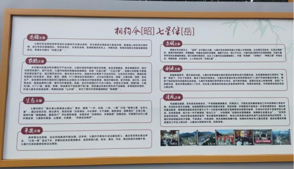在村级组织活动广场,组织员刘俊同志认真宣读了竖立在广场上有关七星村的材料,在场的党员同志们深刻学习并认真领会七星村乡村振兴的规划理念——树立典型“立杆子”、迎难而上“钉钉子”、产业转型“搭对子”、整体风貌“变样子”。测绘地信教工党支部陈新保书记宣读村干部的“三牛四干”型十条标准。七星村以“四子”党建工作法为抓手,以七星伴岳“先锋之星、农旅之星、生态之星、平安之星、文明之星、创业之星和清风之星”之作为目标考核,全力推进七星村进入“处处是景点,户户有产业,人人能增收”的美丽乡村。同行的党员同志们纷纷点赞七星村的乡村振兴建设取得的成果,党建工作之规范和创新,纷纷表示要认真学习七星村党建引领乡村振兴的工作理念和精髓。