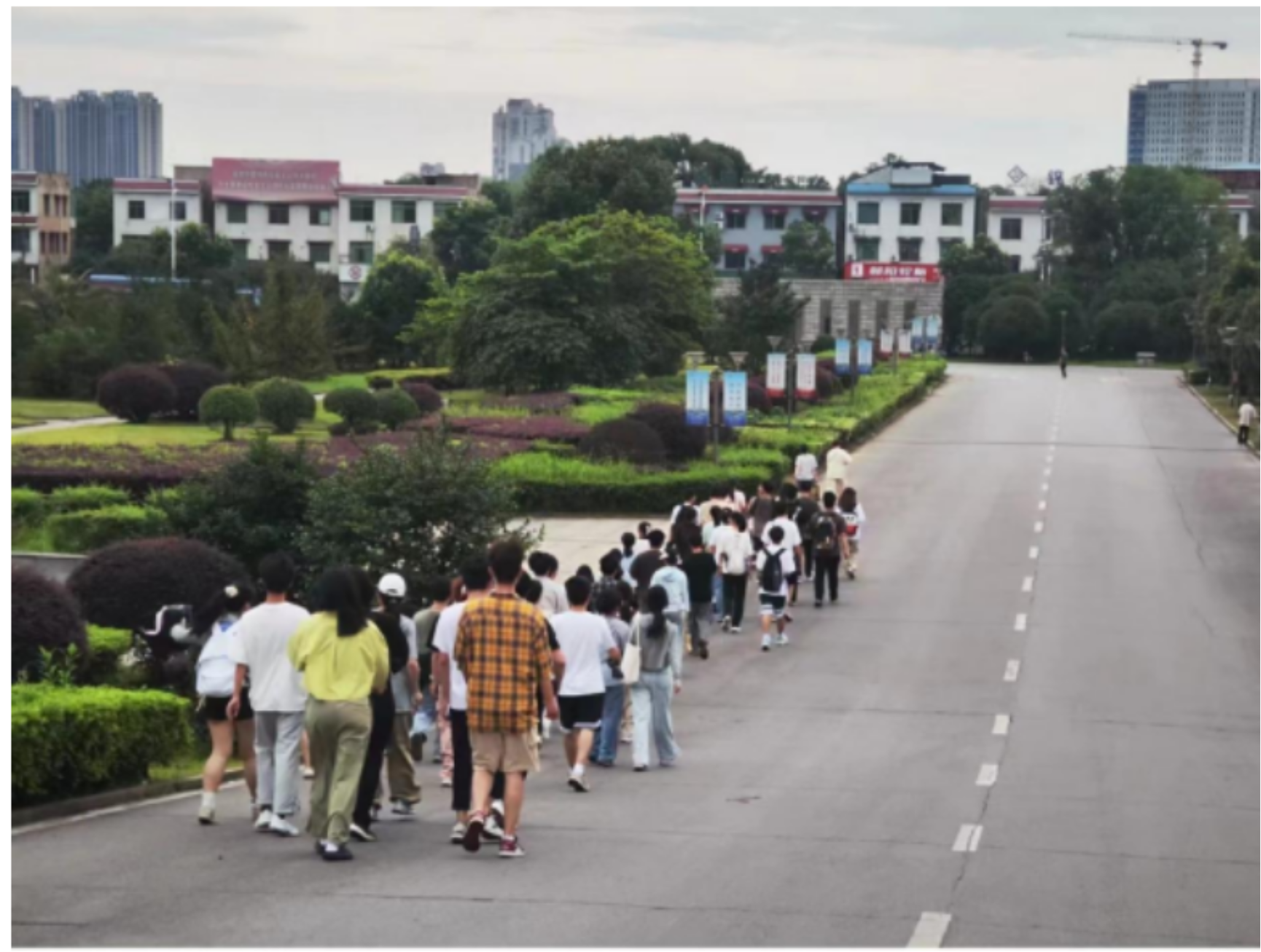 首先,全体参加活动的同学们在学院门口集合。学院党委副书记崔皓老师发表了热情洋溢的致辞,强调了徒步活动的意义,并鼓励同学们战胜困难、一鼓作气、坚持到底,走到学校文化的根源地-昭潭书院,去感受昭潭书院带来的历史沉淀感。