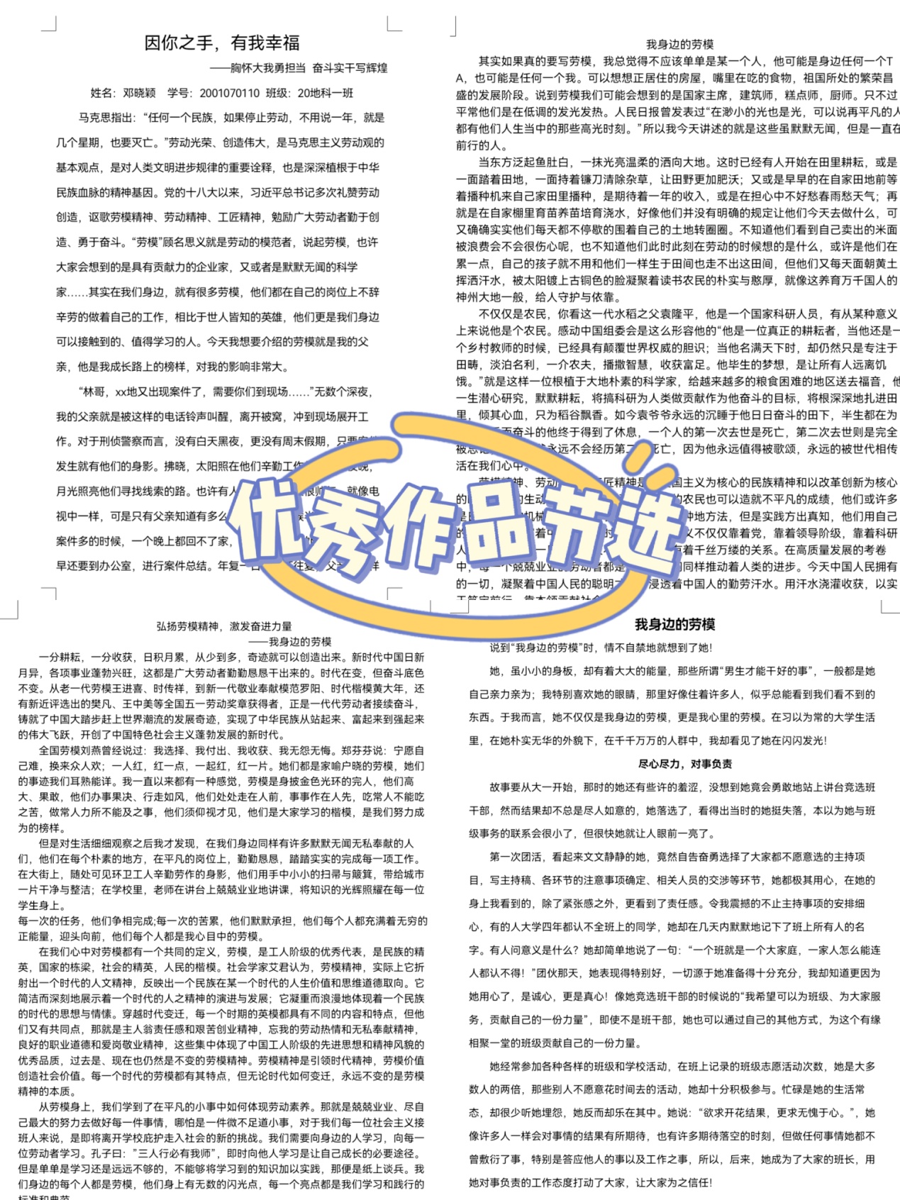 在4月3-8日在院内开展“我身边的劳模”征文活动,对于文章内容丰富可以在地院楼一楼进行展示,号召同学们观看学习。