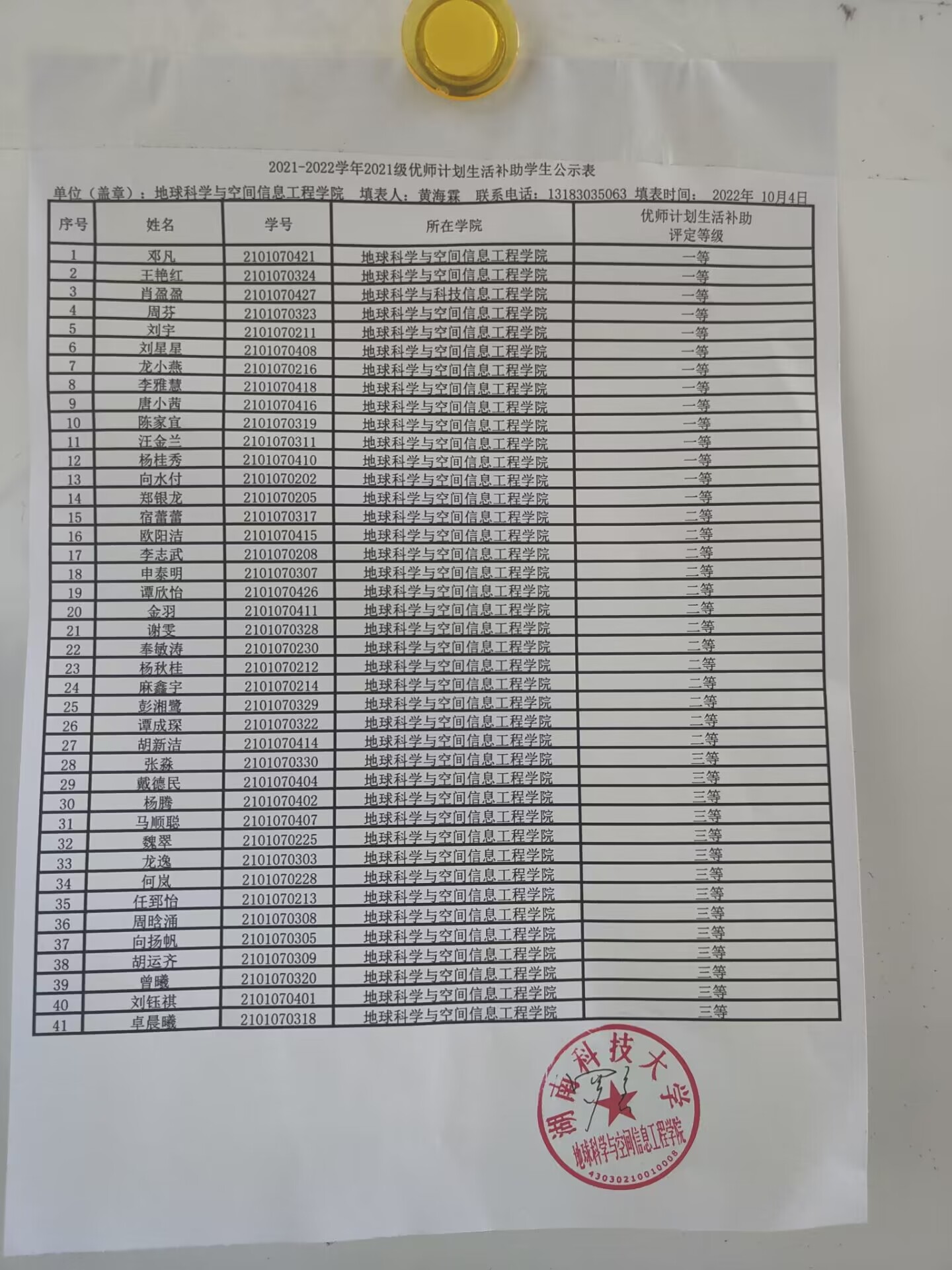 2021-2022学年2021级优师计划生活补助学生公示情况如下: