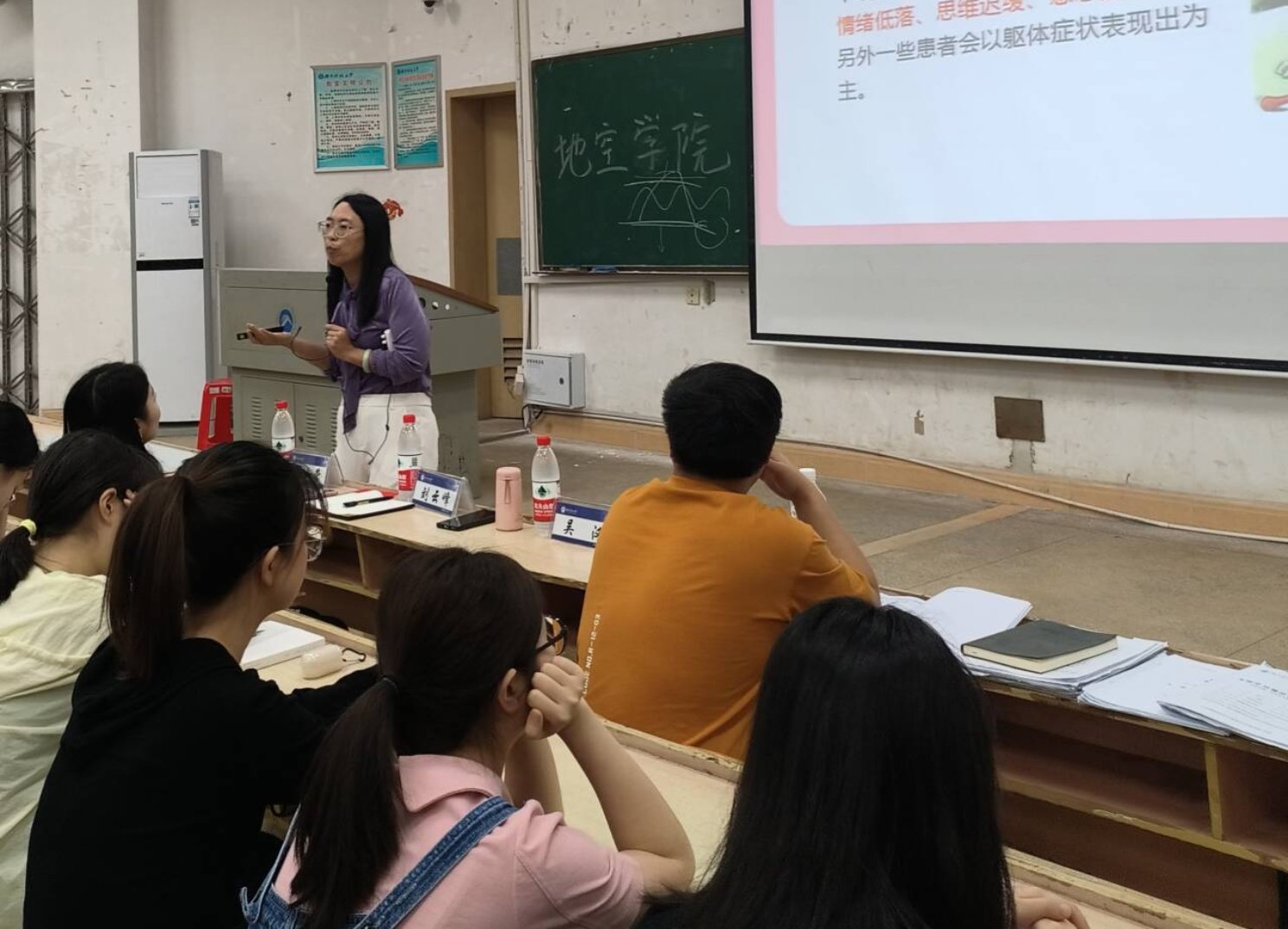 会议伊始,刘主任指出寝室长是构建和谐宿舍氛围、帮助同学健康成长的重要力量,在维护宿舍成员心理健康方面扮演着至关重要的角色。随后,她以抑郁症为例讲述了大学生常见的精神疾病的表征,心理路程和治疗方式。最后,刘主任还针对寝室生活中可能出现的心理问题,提出了具体的应对策略和建议。
