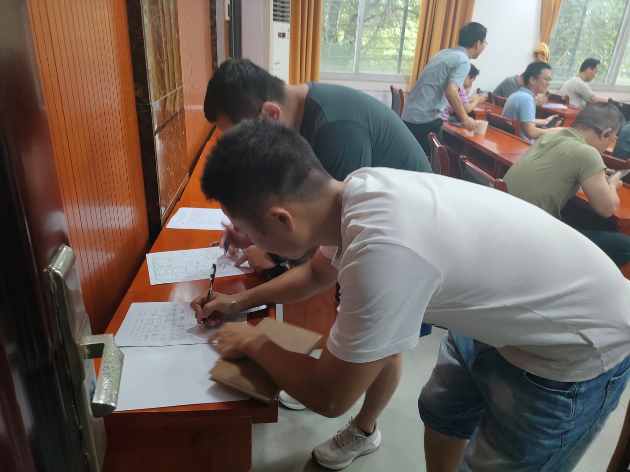 ▲图为学院教师在承诺书上写上自己的名字