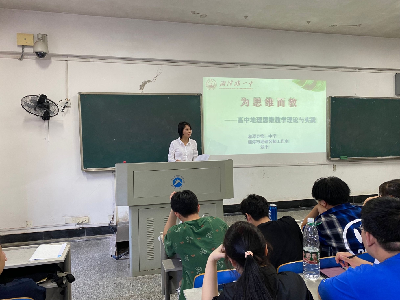 湘潭县一中地理高级教师章平老师应邀来我校讲学