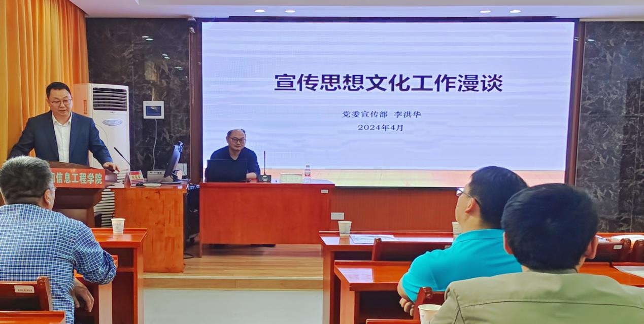 党委宣传部常务副部长李洪华指出学校党委、各二级党组织领导干部要加强党委理论中心组学习,抓好意识形态工作,并坚持以正面宣传为主的方针,巩固壮大主流思想舆论,弘扬主旋律,传播正能量。