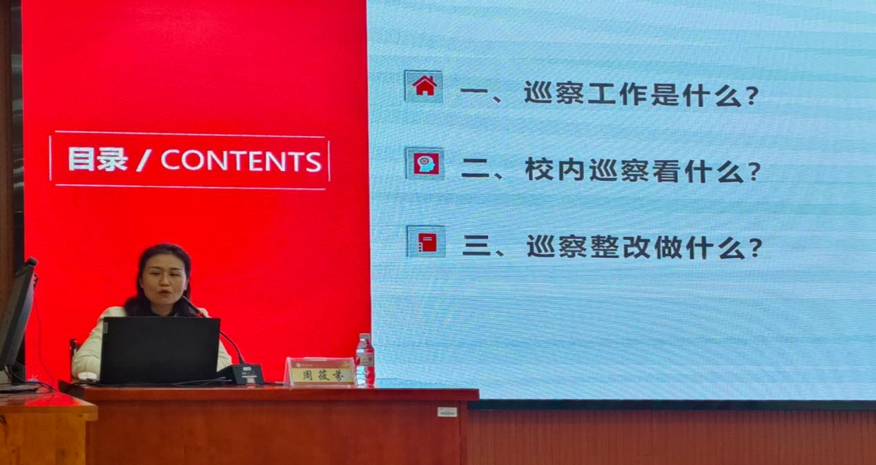 党委巡查工作办公室副主任周筱芬表示要把准内涵要求,切实担当履职,以高质量巡察整改助推事业发展。她在辅导报告上强调巡察工作的重要性,不仅在于查找问题,更在于通过有效的整改措施促进单位的长远发展。