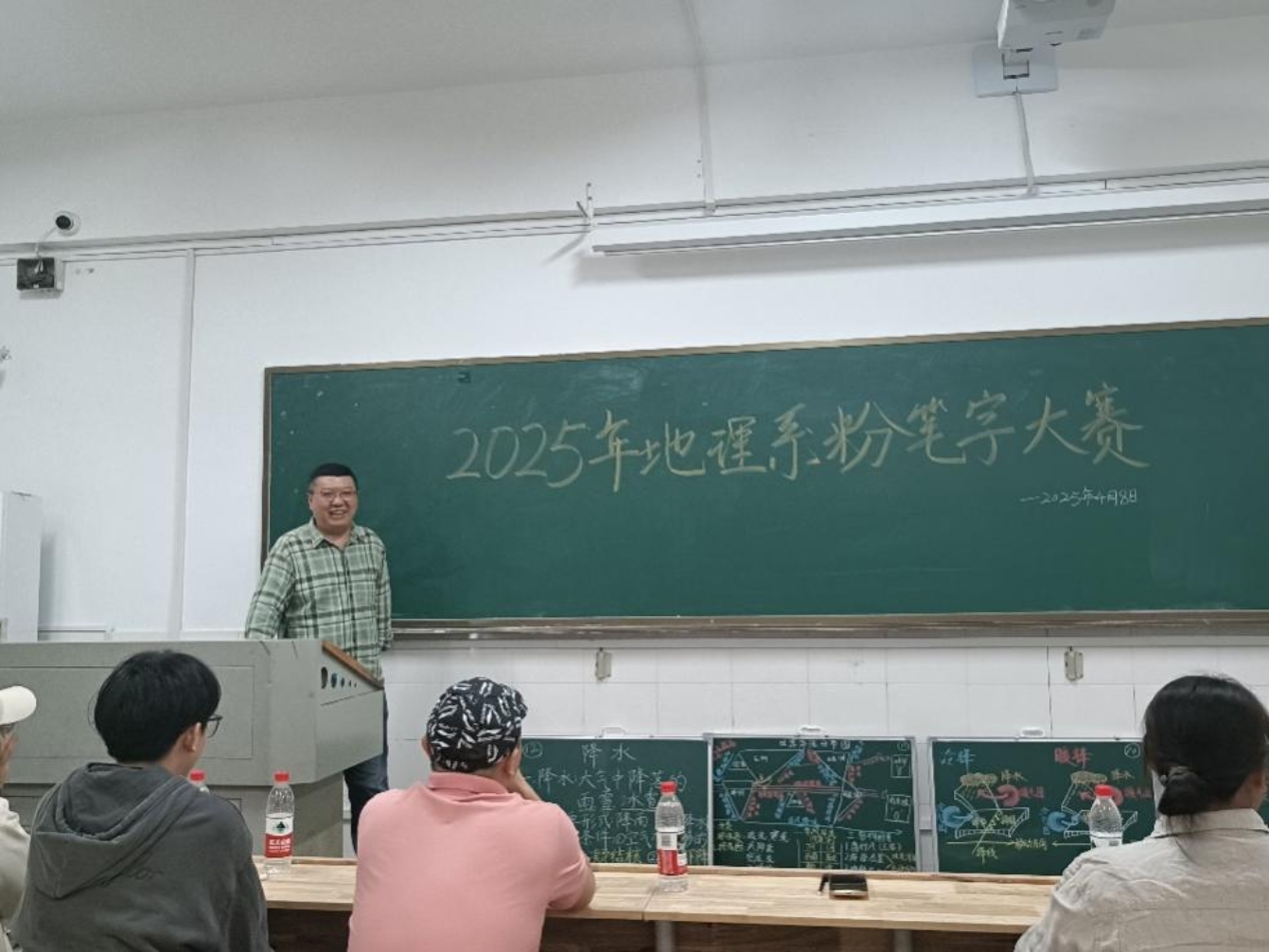 为夯实师范生教学基本功,提升地理课堂板书设计与实践能力,无码破解 地理科学专业于2025年4月8日19:30在第五教学楼201教室举办”粉笔字比赛”。本次活动聚焦高中地理核心知识,通过板书与板图创作展现师范生综合素养,吸引了全专业数余名学生参与竞技。