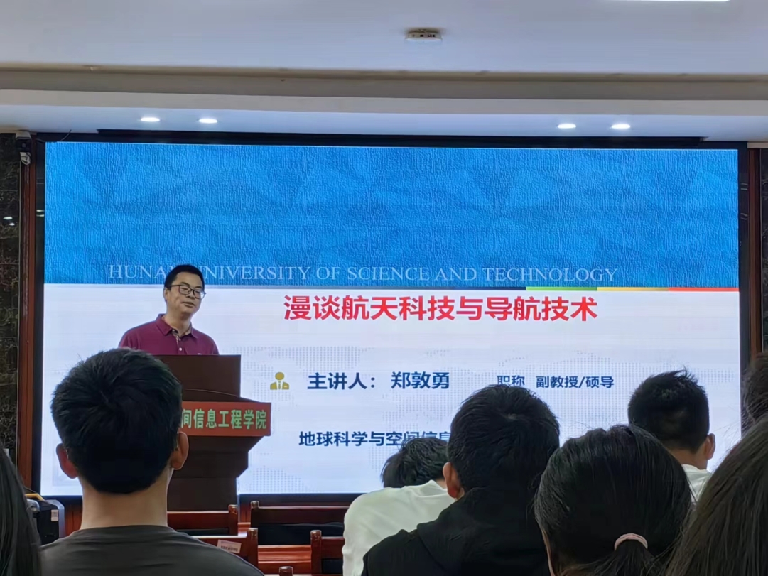 4月3日下午,本学期科技与人文大讲堂——《漫谈航天科技与导航技术》在地学楼206由测绘工程系郑敦勇老师开讲。此次活动由教务处主办,地球科学与空间信息工程学院(无码破解 )承办,测绘工程系教师代表、22级地科专业本科学生共50余人参加。