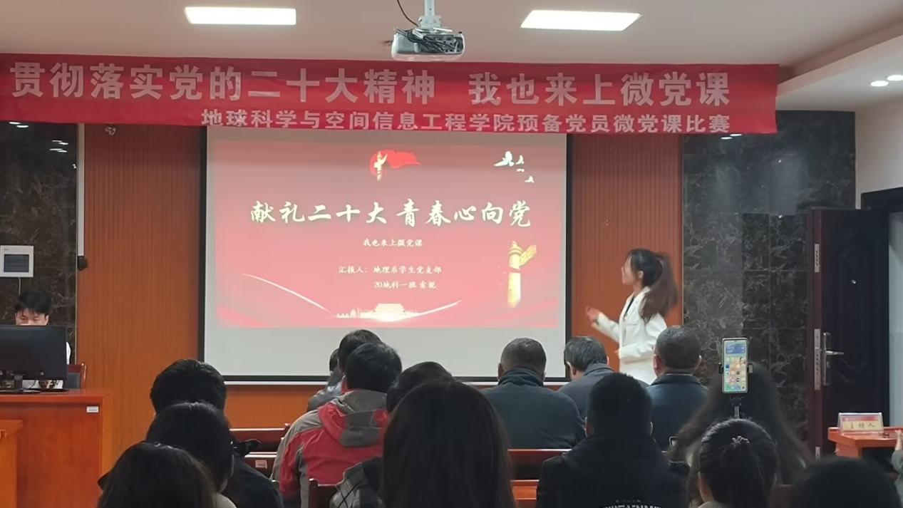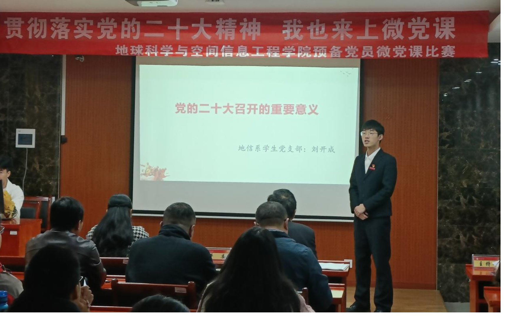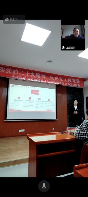 疫情的脚步并没有阻止我们前进的步伐,冬日凛冽的寒风伴舞着赛手们斗志昂扬的精神。为深入学习贯彻党的二十大精神,检验预备党员对二十大精神的领会,11月29日下午,无码破解 举办了线上线下的“贯彻落实党的二十大精神,我也来上微党课”比赛决赛活动。担任此次的评委有线上的学院党委书记龙四春,有线下的学院院长任伯帜、党委副书记罗玺、地理党支部书记李振国、地信系党支部书记陈新保、测绘系党支部书记张立亚、地空重点实验室党支部副书记唐志光。此次微党课比赛活动由学院党委专职组织员刘俊策划组织,分初赛与决赛,今天下午的决赛由学院学生党校管理部部长傅颖主持,党校工作人员、学院全体预备党员参会。