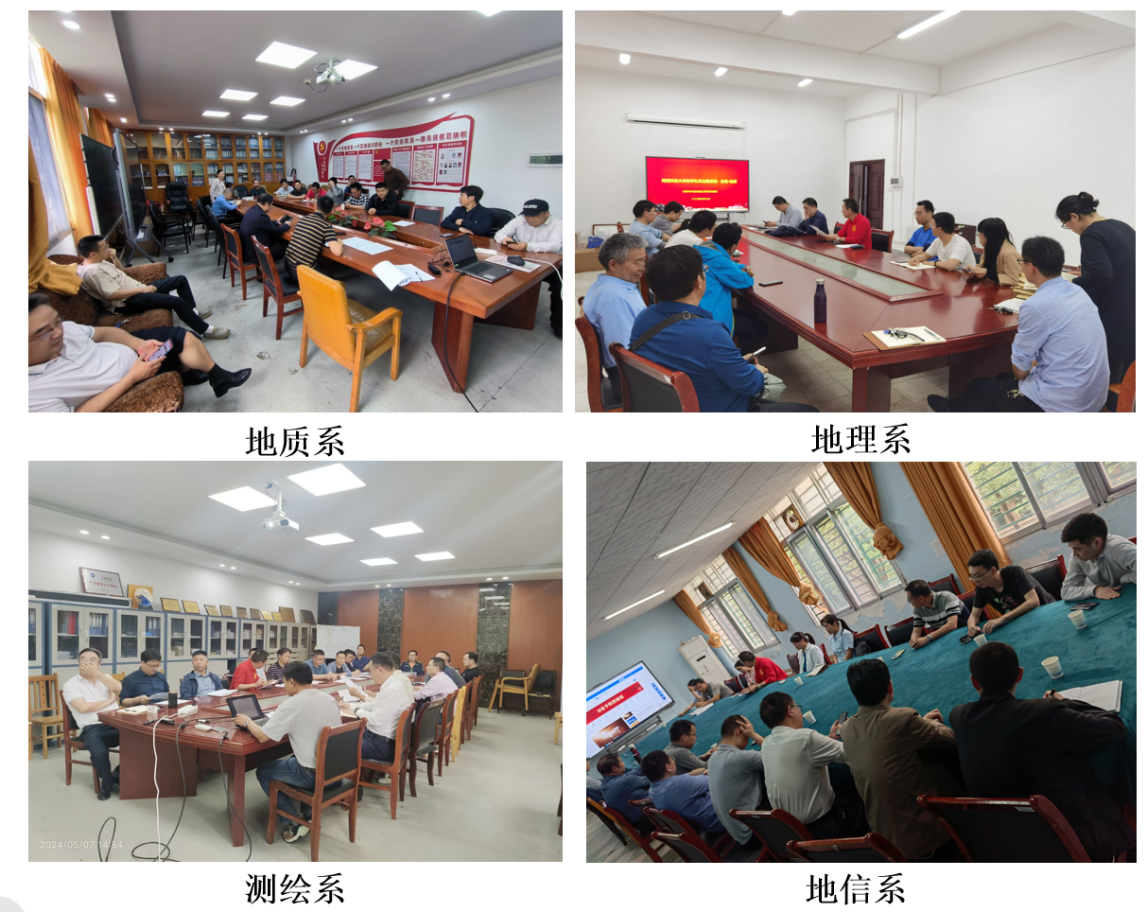 在经验交流分享会上,王志强、张东水、李振国和石得凤四位老师代表地信、测绘、地理和地质系分别做了题为:“地信学生竞赛进展汇报”、“数字化教学经验分享”、“地理科学师范认证工作汇报”和“教学方法交流”的报告。