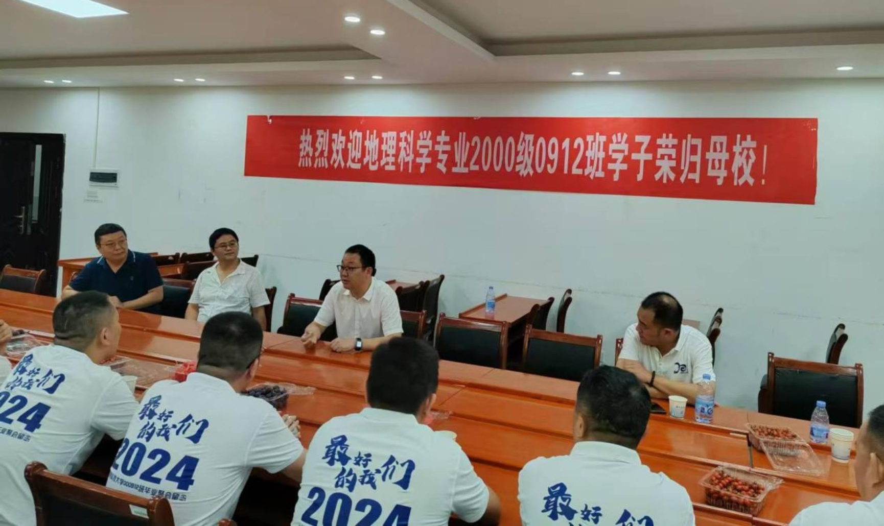 2024年8月3日,地球科学与空间信息工程学院地理科学专业2000级校友毕业二十周年荣归母校。学院党委书记龙四春、副院长戴德求、地理系主任李振国、教师代表向茂成老师、陶建军老师、邓江楼老师、袁开国老师,热情接待了返校校友,并于地学楼206举行了校友座谈会议。