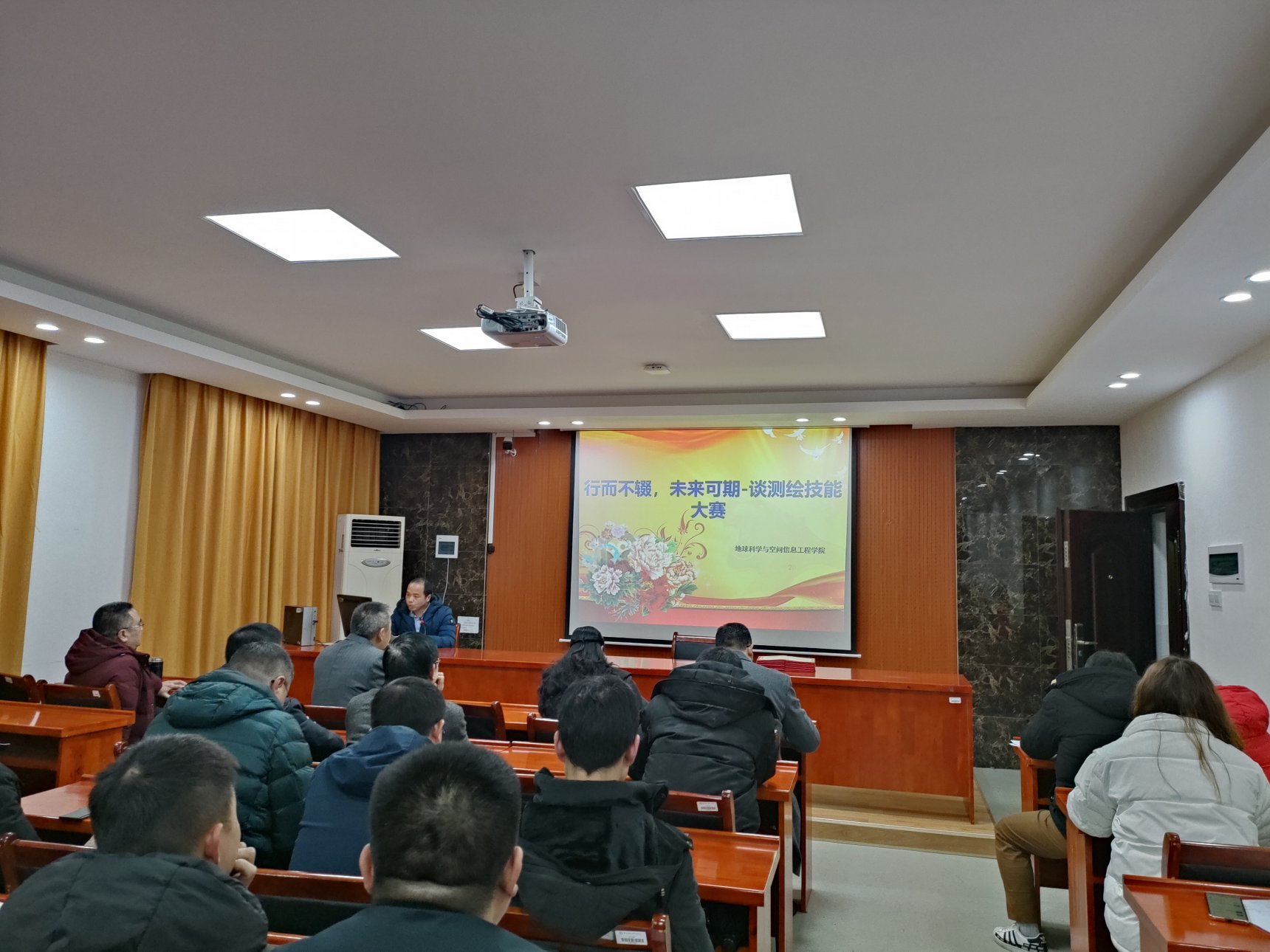 肖魏峰博士从赛事介绍,获奖情况,个人感言三个方面讲述了测绘技能大赛赛事分享的经验。给出学院近四年在国赛和省赛上取得的成绩时,肖博士意味深长的说道:去年学院的成立让我们深深感受到领导们对于赛事殷切关心和大力支持、学生们挑灯继日的努力拼搏,感受到指导老师们辛勤耕耘劳作和忘我无私奉献的精神。尽管有过徘徊、挫折、放弃的念头,但不忘初心,坚持让我们获得了两项国赛特等奖,十项省赛一等奖等的好成绩。雷鸣般的掌声似乎诉说着去年的辉煌和来年的期待。
