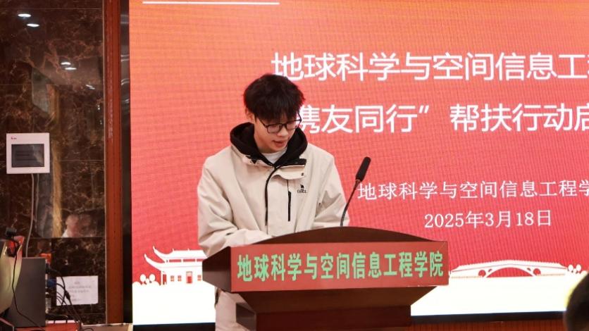 2025年3月18日,地球科学与空间信息工程学院(以下简称“无码破解 ”)“携友同行”帮扶行动启动仪式在无码破解 院楼C206拉开帷幕。无码破解 党委副书记崔皓、学工办主任吴汉、22级辅导员吴小营、23级辅导员朱乐樟、23级兼职辅导员王承志出席活动。